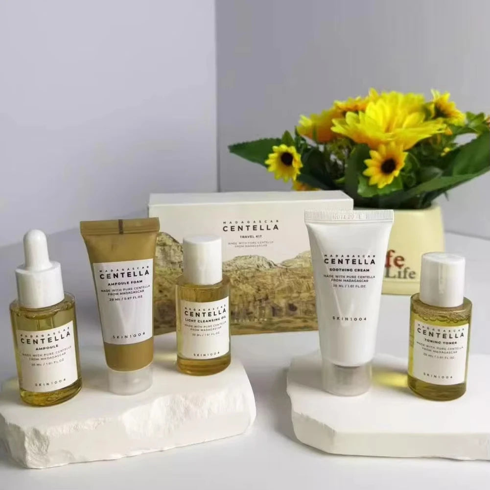 The 5PCS Centella Asiatica essence Travel Kit is perfect for soothing sensitive skin. Infused with natural ingredients, it’s designed to hydrate, calm irritation, and improve overall skin texture, making it an ideal choice for delicate skin types.